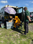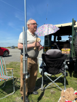 It was a warm sunny day, masts were setup and antenna’s tuned, Sandwiches and sausage rolls made. We had a few contacts on HF then came the picnic with sandwiches, sausage rolls, quiches and home grown salad and tea, coffee and lemonade kindly provided by Sheila and Pat – thank you girls.